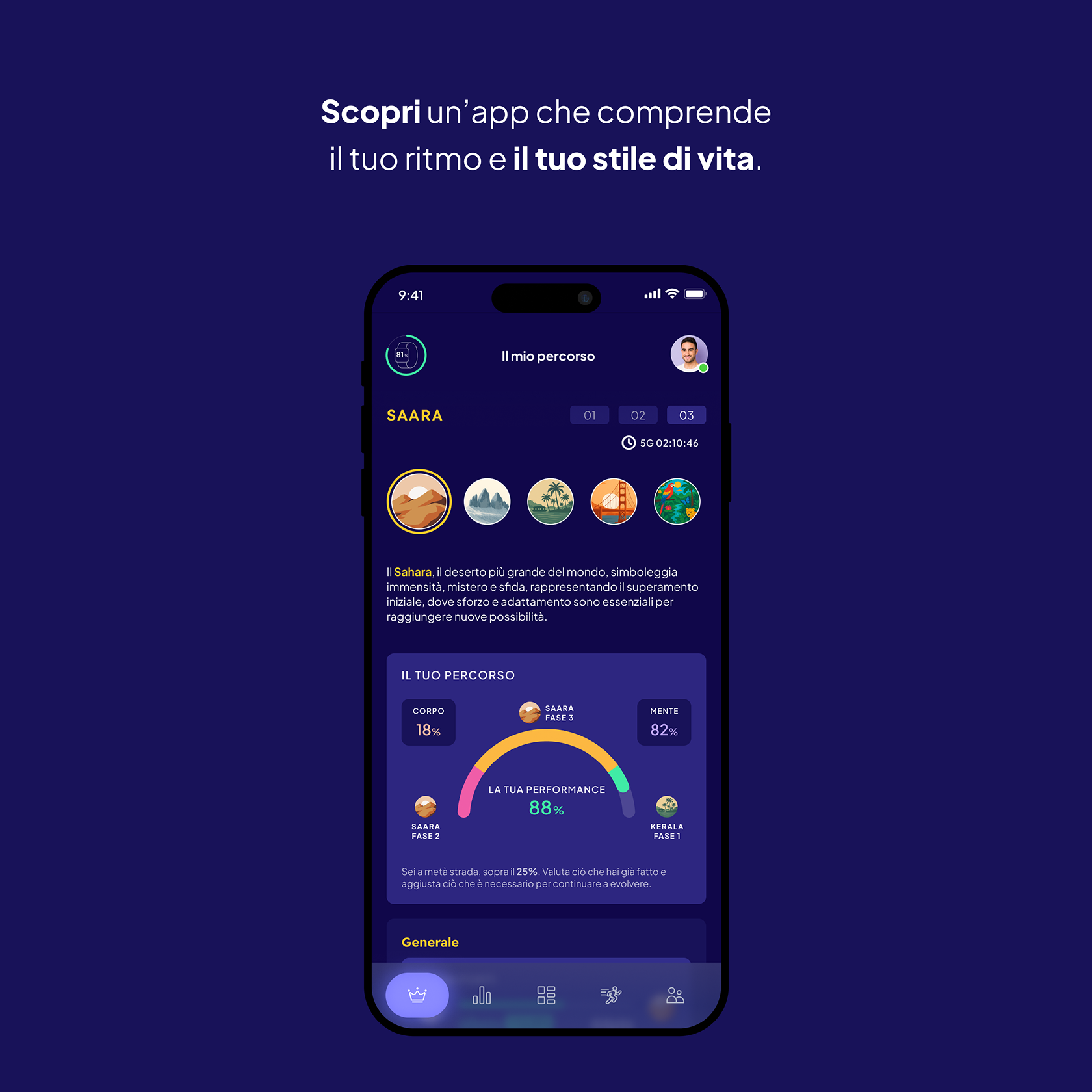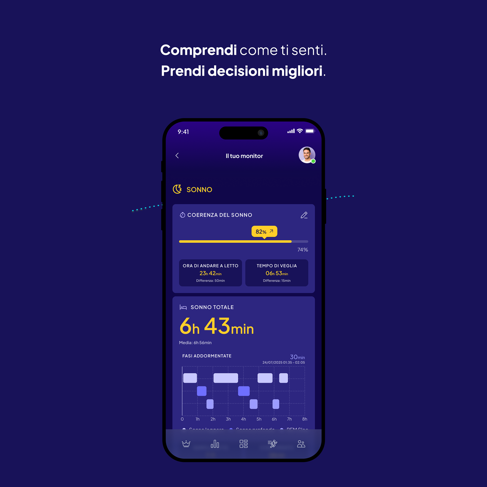 - Mente: analizza il sonno e la concentrazione, guidandoti su come migliorare la tua energia e il tuo focus.