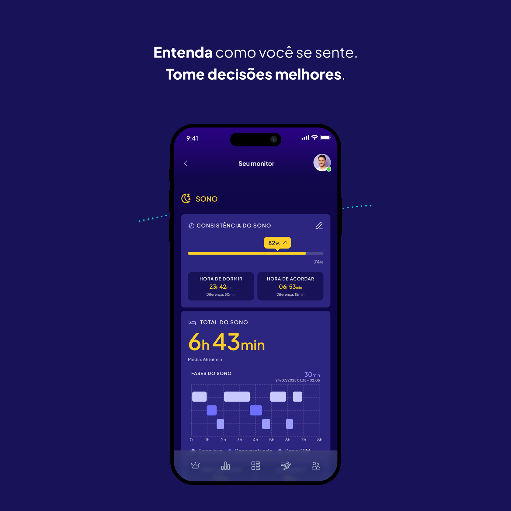 Mais do que medir passos ou batimentos, ela interpreta seu corpo e sua mente por meio de inteligência artificial, ajudando você a tomar decisões melhores sobre treino, sono e recuperação.